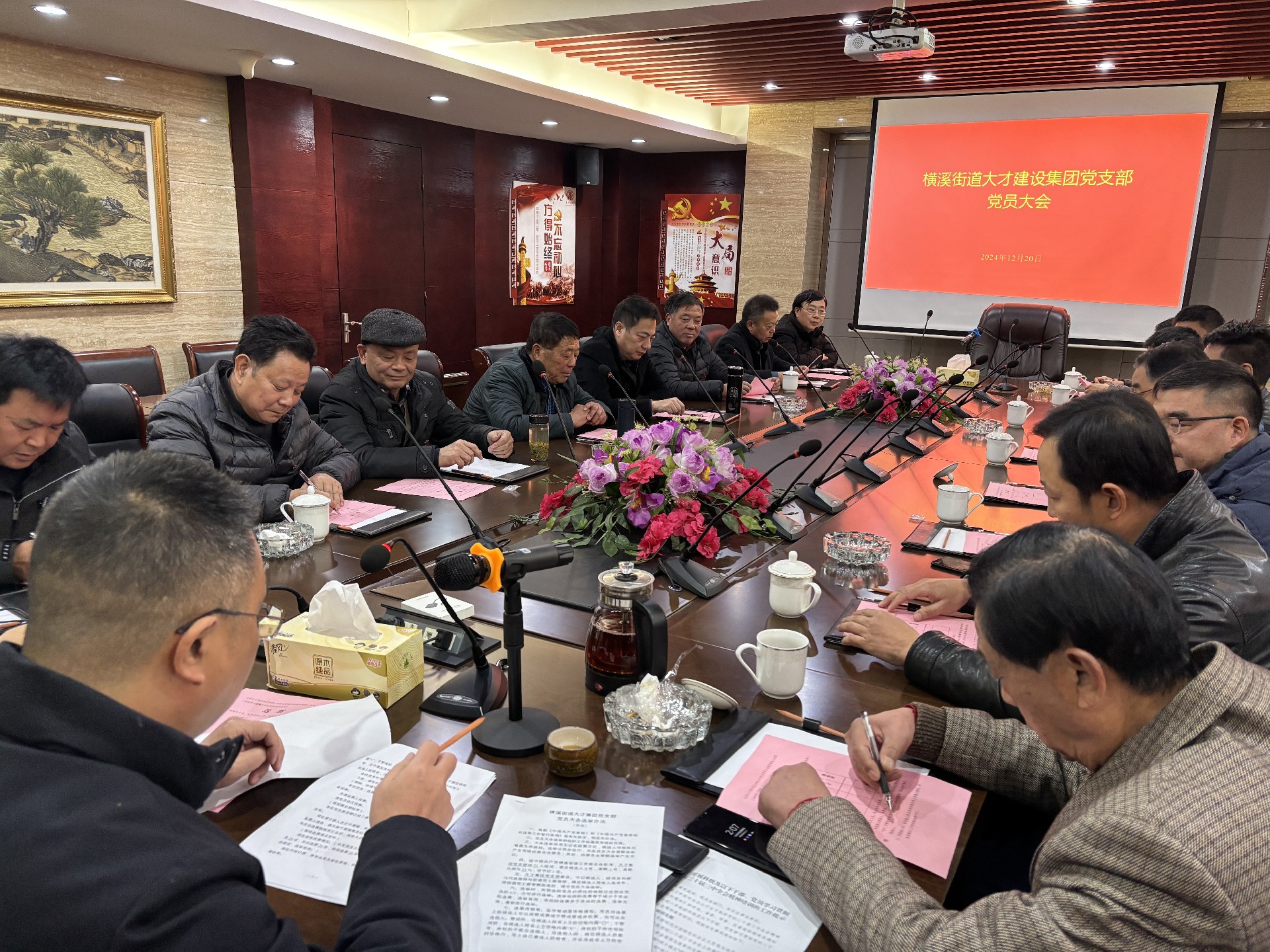 2024年12月20日,横溪街道大才建设集团党支部党员大会换届选举大会隆重召开,本次会议旨在进一步加强党的基层组织建设,增强党组织的凝聚力和战斗力,推动各项事业蓬勃发展。