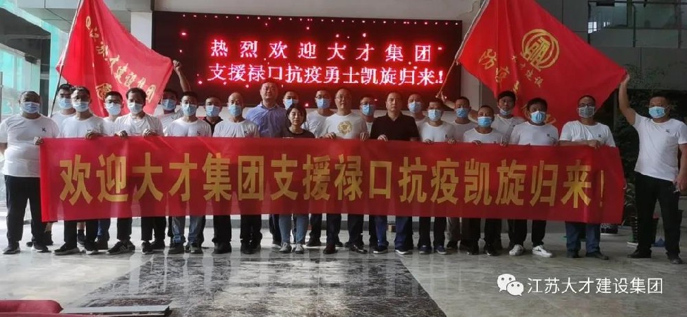 肩负着使命出发,承载着荣誉归来! 8月26日,大才集团支援禄口街道抗疫先锋队20名队员圆满完成任务后凯旋归来! 9月1日下午,集团监事会主席潘大才、董事长潘光林、总经理吕正兵、副总潘光荣在集团举行欢迎仪式,30个连续奋战的日子里,他们以实际行动践行抗疫精神!欢迎仪式