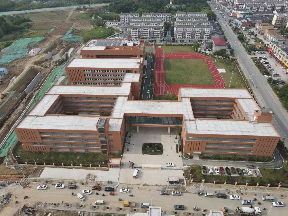 总建筑面积30379平方米,由3栋装配式框架结构4~5层教学楼和食堂综合楼组成,局部地下一层。