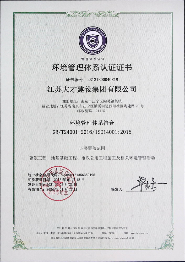 环境管理体系认证证书