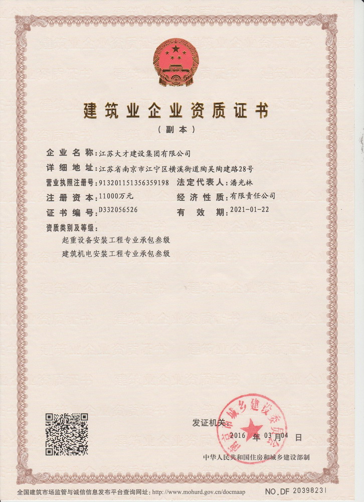 建筑业企业资质证书叁级