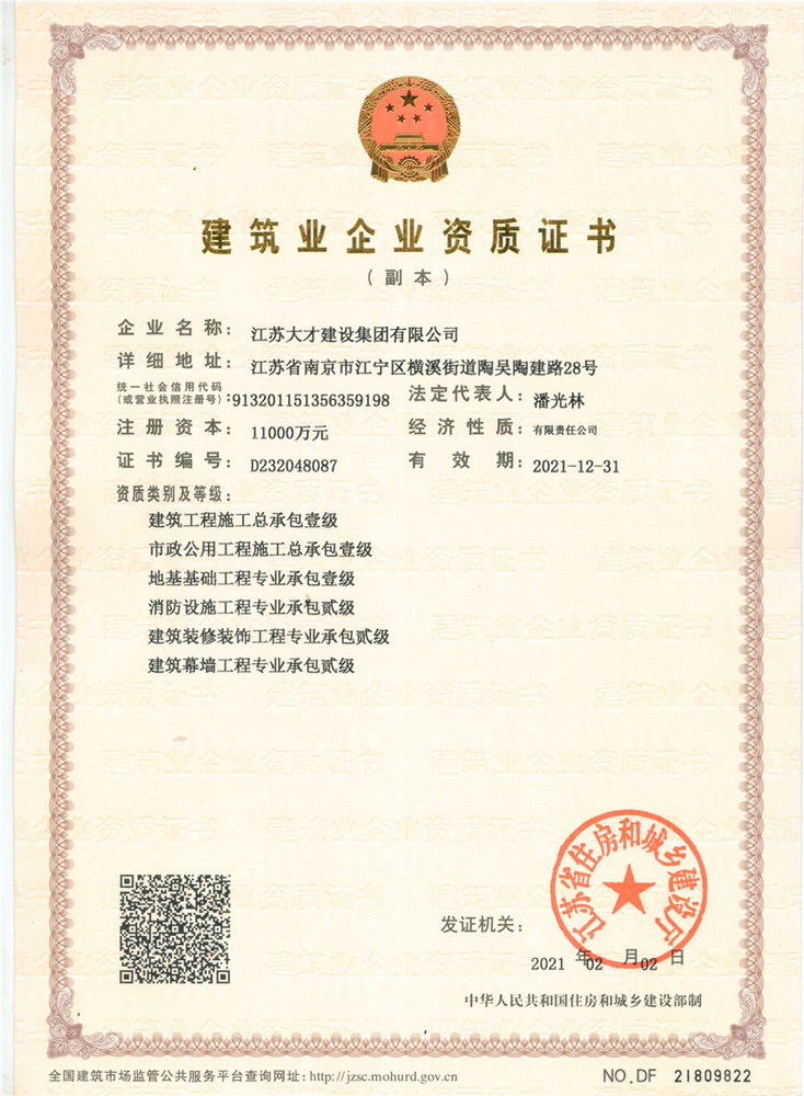 建筑业企业资质证书壹级贰级