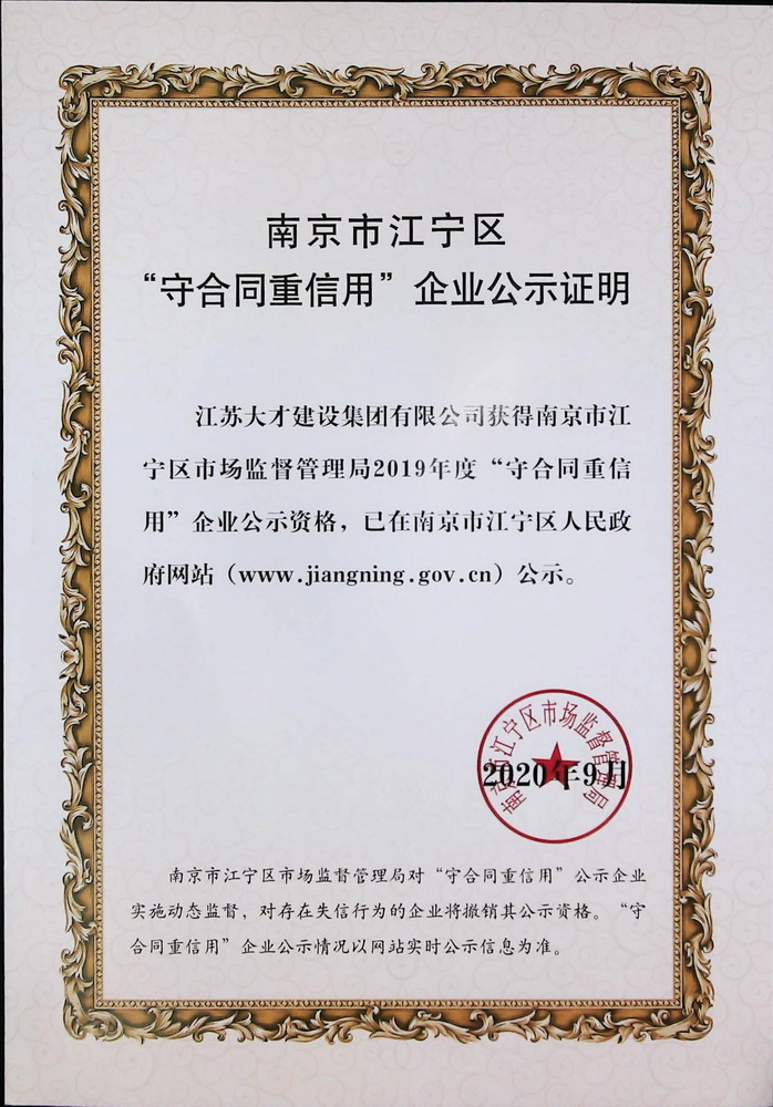 江宁区守合同重信用企业公示证明